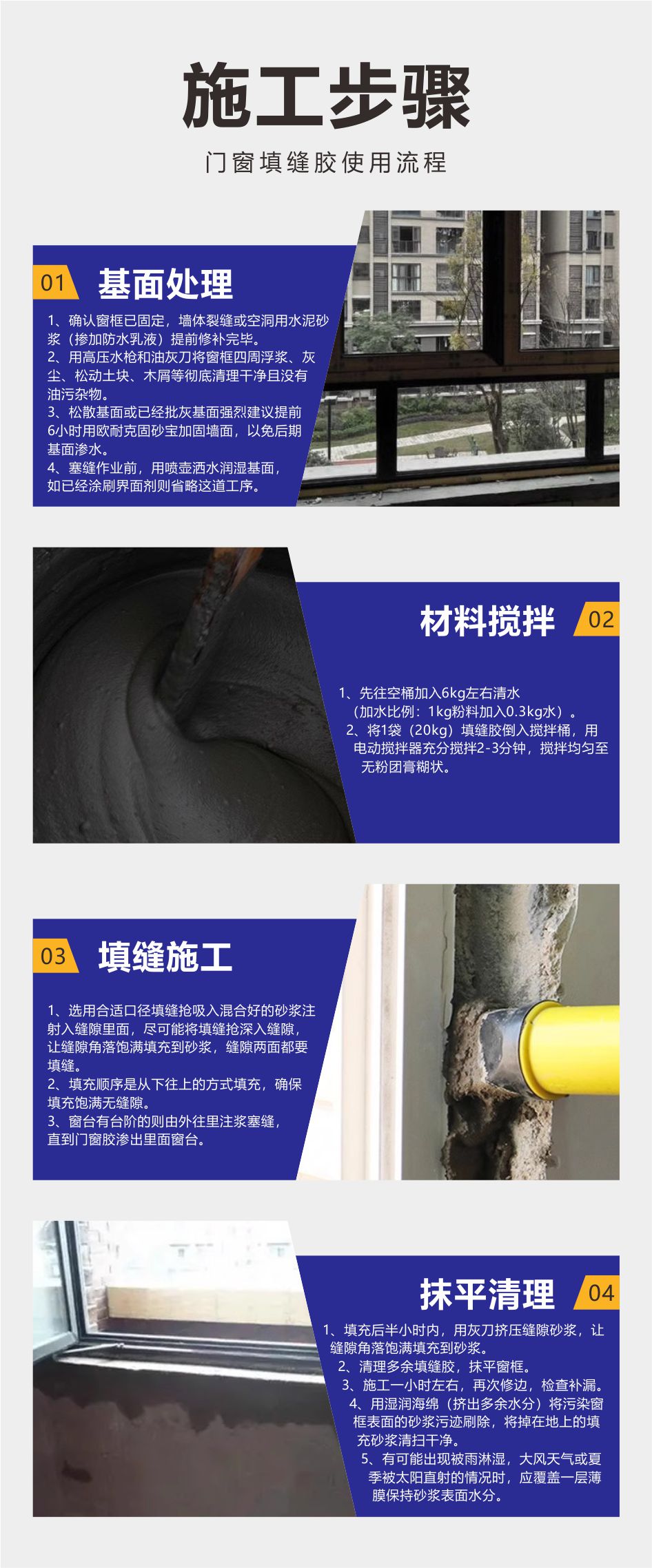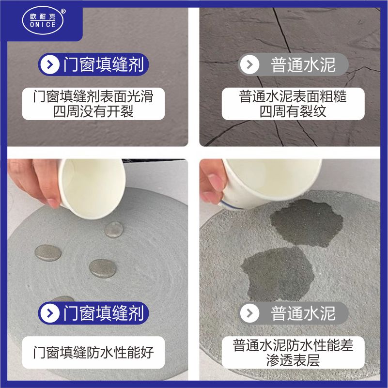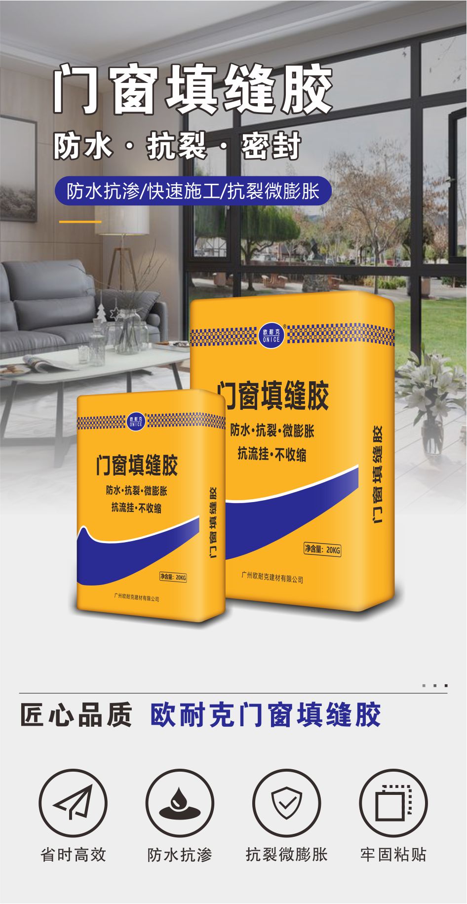 歐耐克門窗填縫膠由特種水泥膠凝材料、礦物集料、有機外加劑精制而成,采用專用灌壓器對門框、窗框與墻體之間的縫隙進行填充,取代了傳統(tǒng)手工塞縫和發(fā)泡劑填縫工藝,機械化施工,大大提高填縫效率和質(zhì)量,有效防止門窗縫滲漏、開裂的現(xiàn)象。