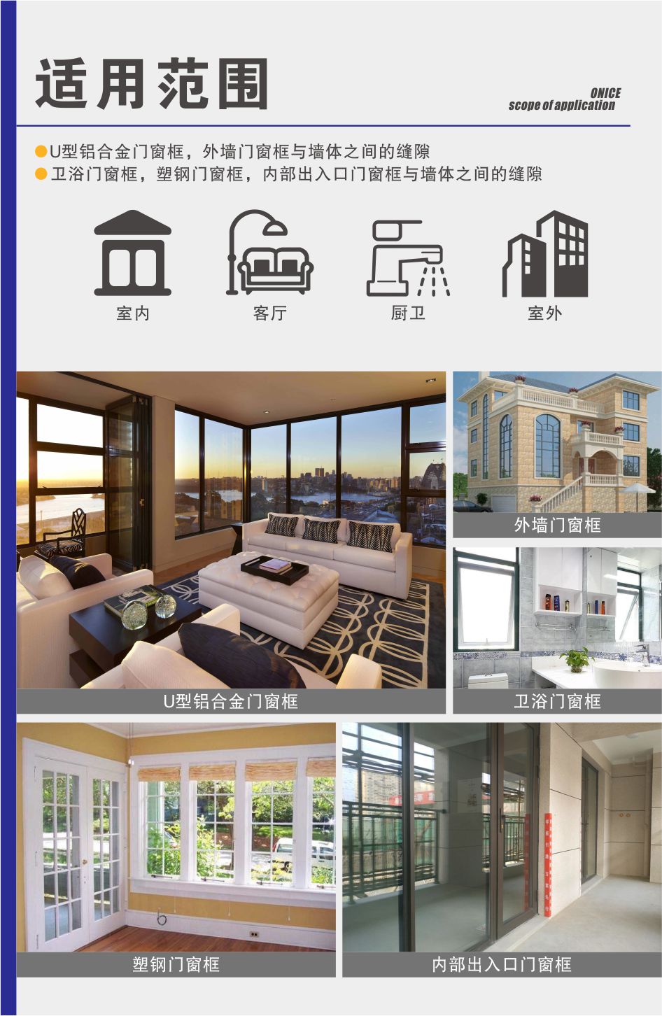 U型鋁合金門窗框,外墻門窗框與墻體之間縫隙,衛(wèi)浴門窗框,塑鋼門窗框,內(nèi)部出入口門窗框與墻體之間的縫隙